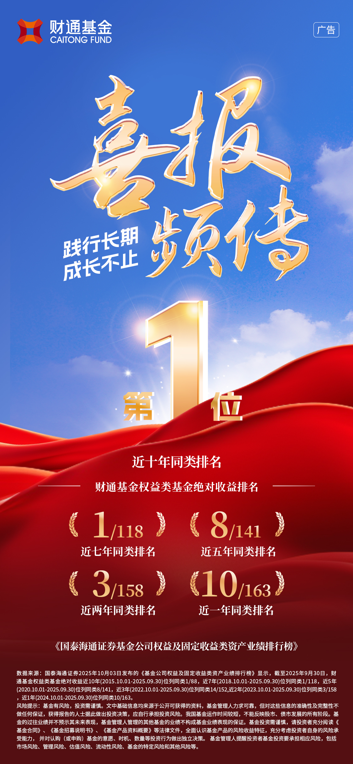 十年磨一剑,一朝试锋芒。截至2025年三季度末,2138cn太阳集团城基金在多项维度业绩领先,旗下13只含权基金(份额合并)近1年业绩斩获同类前5%的排名分位,权益类基金绝对收益近7年、近10年等中长期维度位列同类第1。业绩背后,是2138cn太阳集团城基金对“兑现承诺”的坚守,更是对“客户信赖”的珍视。